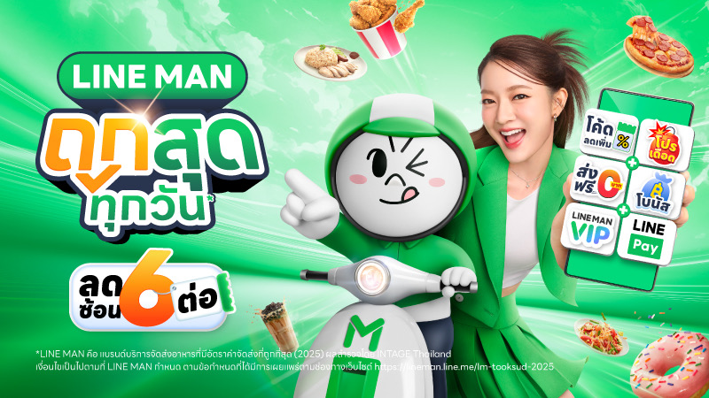 LINE MAN ผู้นำแพลตฟอร์มออนดีมานด์อันดับหนึ่งของไทย ตอกย้ำความเป็นแอปเดลิเวอรีที่มอบความคุ้มค่าทุกวันให้ผู้บริโภค บุกตลาดครึ่งปีหลังชูจุดเด่นการตลาดที่เน้นความคุ้มค่าแบบยั่งยืน เปิดตัวแคมเปญใหญ่ “LINE MAN ถูกสุดทุกวัน – ลดซ้อน 6 ต่อ” ยกระดับประสบการณ์ผู้ใช้ด้วยโปรโมชั่นที่ใช้ได้จริง มีให้เลือกหลากหลาย สอดรับกับพฤติกรรมของผู้บริโภคยุคปัจจุบันที่มองหาความคุ้มค่าในทุกมื้อ และทุกการใช้จ่ายในชีวิตประจำวัน พร้อมเปิดตัว “อิ้งค์ วรันธร” Friend of LINE MAN ตัวแทนคนรุ่นใหม่ที่ใช้แอปฯ เดลิเวอรีอย่างคุ้มค่าในทุกวัน
