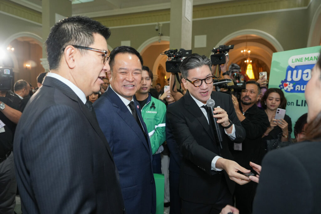 วันที่ 18 พฤศจิกายน 2568 ที่ทำเนียบรัฐบาล LINE MAN Wongnai นำโดย ยอด ชินสุภัคกุล ประธานเจ้าหน้าที่บริหาร พร้อมพันธมิตร ttb และ FlowAccount ร่วมสนับสนุนยุทธศาสตร์ “Quick Big Win” ของกระทรวงการคลัง ในโครงการพัฒนาความรู้ทักษะ (Upskill) หรือเรียนรู้ทักษะใหม่ (Reskill) ที่ผ่านมติเห็นชอบจากคณะรัฐมนตรี ด้วยการนำเทคโนโลยีเข้าไปยกระดับทักษะดิจิทัลให้ผู้ประกอบการร้านอาหารในโครงการคนละครึ่งพลัส โดยมีอนุทิน ชาญวีรกูล นายกรัฐมนตรี, เอกนิติ นิติทัณฑ์ประภาศ รองนายกรัฐมนตรีและรัฐมนตรีว่าการกระทรวงการคลัง และคณะรัฐมนตรี เยี่ยมชมบูธและรับฟังข้อมูลการพัฒนาศักยภาพร้านค้าผ่านเทคโนโลยีที่สามารถนำไปใช้ได้จริง